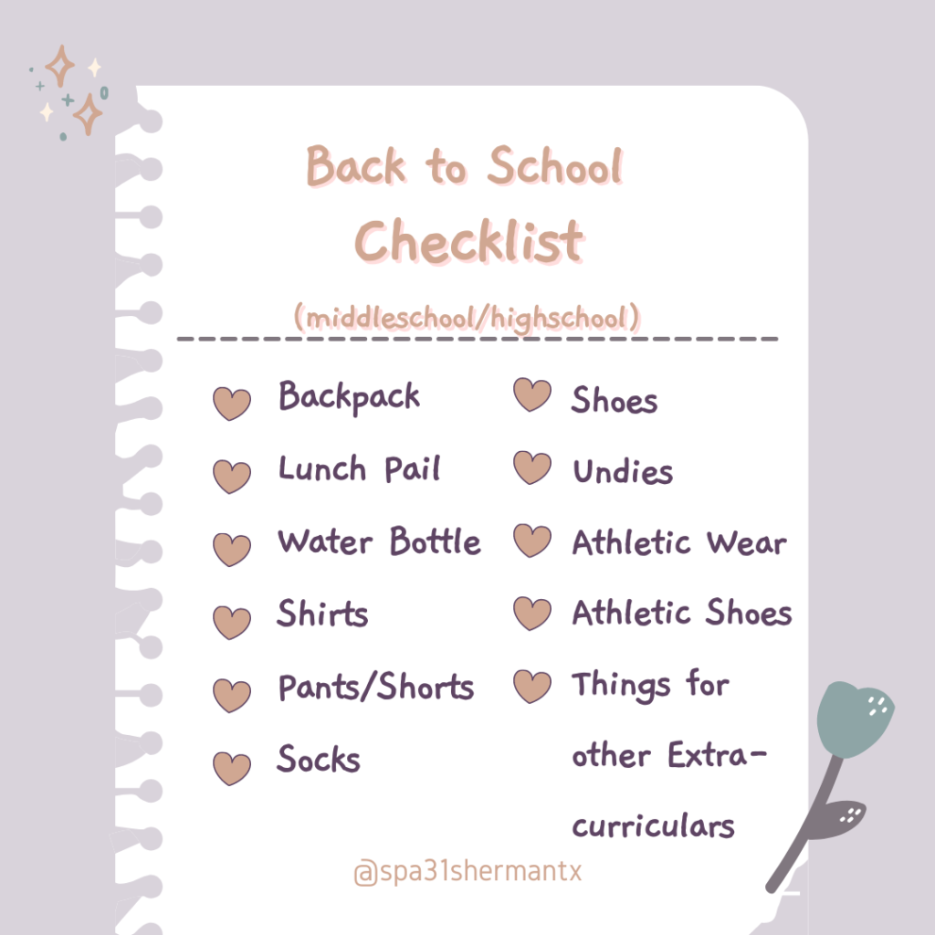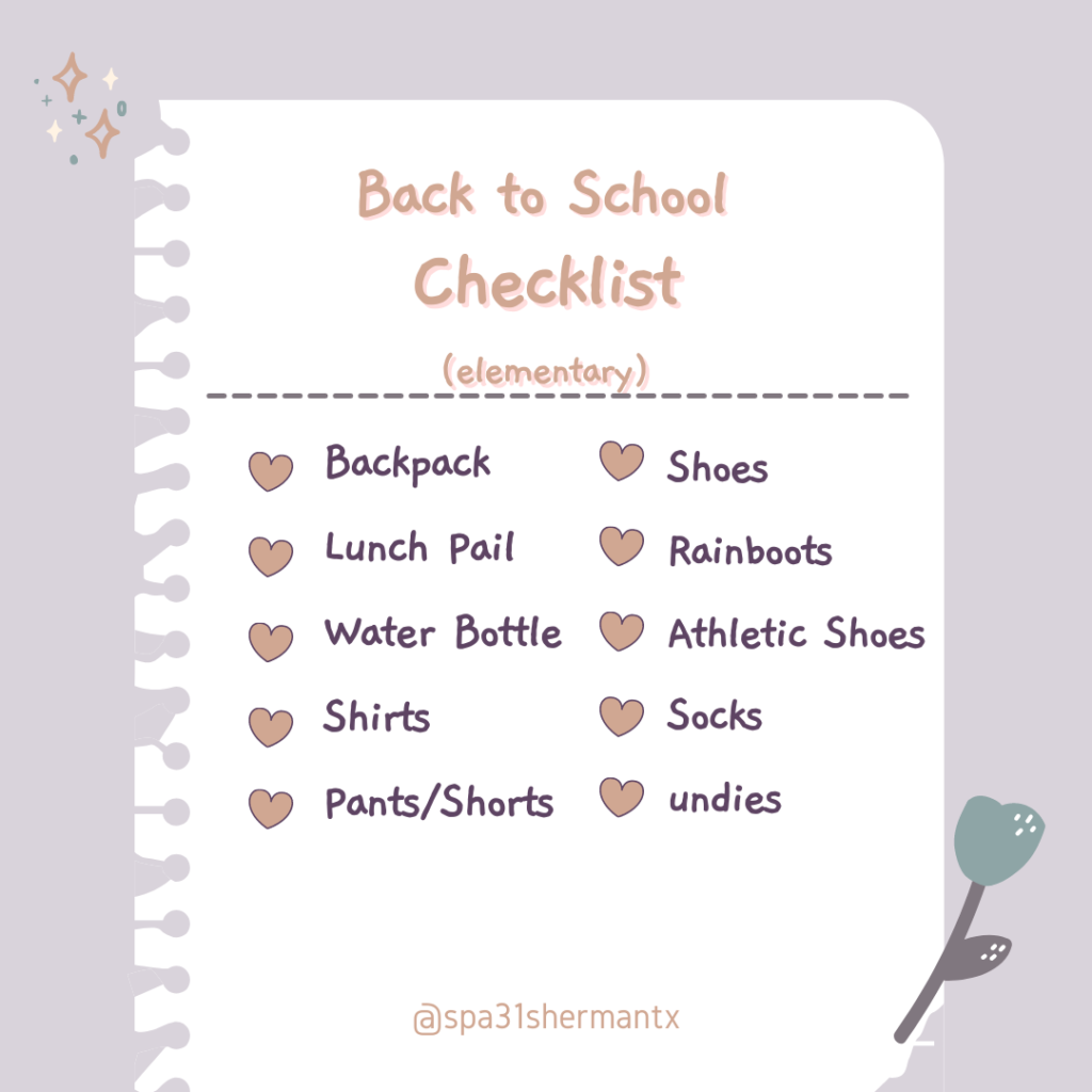 First, we recommend you do a quick closet clean out/ inventory of your kids’ clothing. Make a check list of things they need or print the one we have made, for reference.